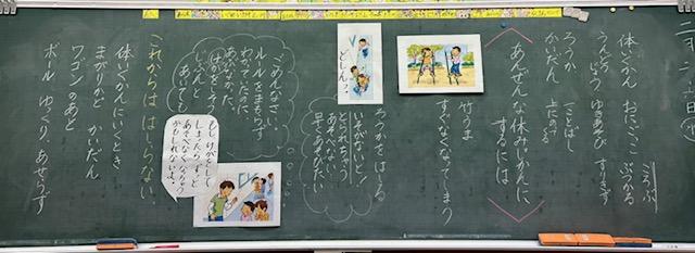 道徳では、「休みじかん」という教材で「節度・節制」について考えました。まず、休み時間に廊下を走ってしまった男の子の心情を考えました。そして6年生に言われた「もしけがをしたら、ずっと遊べなくなっちゃうかもしれないよ」という言葉の意味を考えました。最後に、安全な学校生活を送るために、自分たちの経験から気をつけていきたいことを話し合いました。