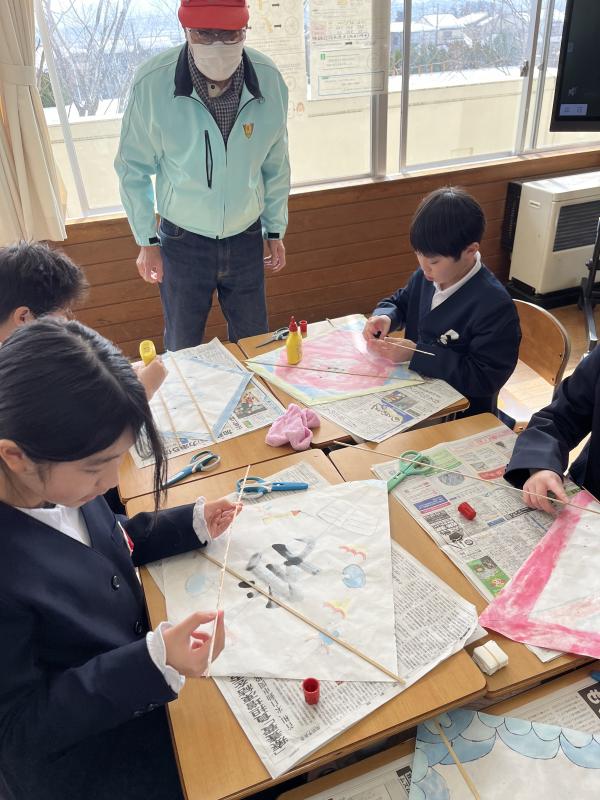 5年生が、日本海内灘砂丘凧の会の皆様をゲストティーチャーにお迎えして、凧作りを行いました。