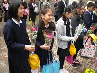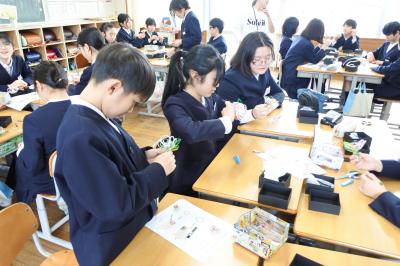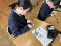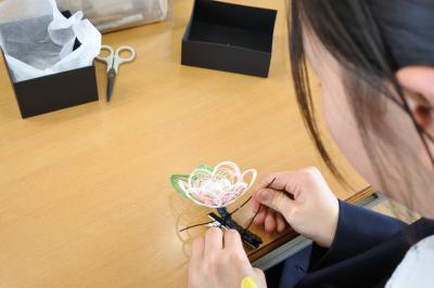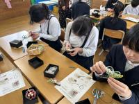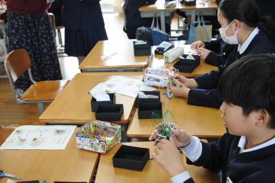 6年生の卒業まであと10日あまり、6年生がゲストティーチャーをお迎えして、卒業式で胸に飾る水引のコサージュを作りました。最初は紐を結ぶのに苦戦している様子が見られましたが、ゲストティーチャーの先生や友達に教えてもらいながら、きれいなコサージュができました。卒業の準備が進んでいくことが心強い半面、ちょっぴりさびしい思いです。