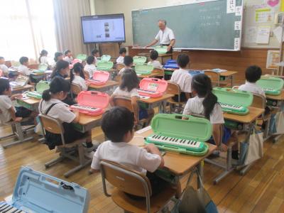 2025年9月19日 17時30分今日は、鍵盤ハーモニカ講習を受けました。鍵盤ハーモニカの置き方や準備の仕方から、掃除や片付けの仕方まで、楽しくしっかりと教えてもらいました。また、すてきな演奏も聞かせていただきました。これからの音楽の授業でも練習し、早く演奏ができるようになりたいですね。