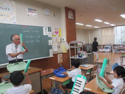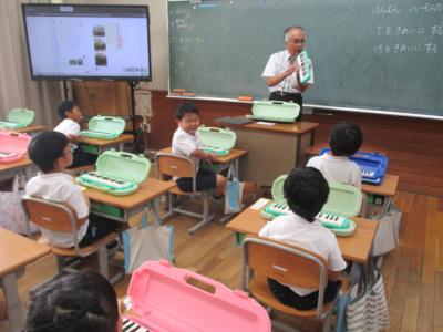 今日は、鍵盤ハーモニカ講習を受けました。鍵盤ハーモニカの置き方や準備の仕方から、掃除や片付けの仕方まで、楽しくしっかりと教えてもらいました。また、すてきな演奏も聞かせていただきました。これからの音楽の授業でも練習し、早く演奏ができるようになりたいですね。