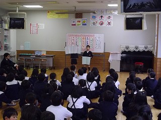 3月6日の朝学習の時間に今年度最後の読み聞かせをしていただきました。「かんぺきなこども」という子どもをお店で売るお話を読んでいただきました。子どもたちは、「ペットのように売っているのが面白かった」などとても喜んでいました。お忙しい中、1年間読み聞かせをしていただき、ありがとうございました!