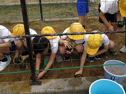 今日は、4年生が種から育てていたヘチマの苗を植え替えました。