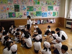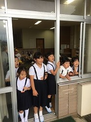 地震に続いて、津波から身を守る避難訓練を初めて実施しました。本校の校舎は海面から25メートルの高さにあります。避難訓練の計画段階では、何度もどのように避難するかを練り直しをして訓練日を迎えました。地震発生の緊急放送で、児童はいっせいに机の下にもぐって頭や体を守る体制になり、揺れがおさまるのを待ちました。その後、津波発生との放送で、全児童が校舎2階に避難しました。初めての経験でしたが、静かにすばやく避難することができました。訓練後は教室にもどり、放送とDVDで津波の恐ろしさと避難の仕方を学習しました。今日学習したことをおうちでも家族の皆さんに教えてくださいと伝えましたが、子どもたちは話したでしょうか。