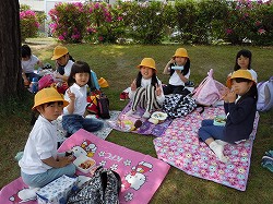 蓮湖渚公園では、グループに分かれてお弁当やおやつを食べ、友達と仲良く遊ぶことができました。