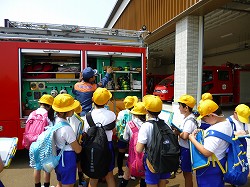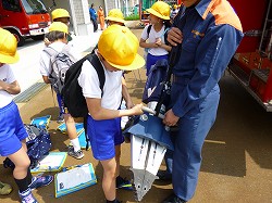 みんな消防士さんの説明を一生懸命聞いていました。