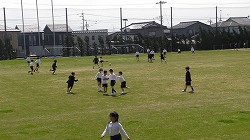 芝生の運動場は、大人気です。