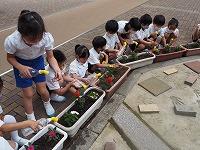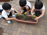 その後は、1人1つ花を植えました。きれいなお花にみんな大喜び。