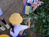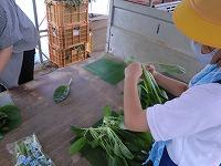 小松菜の収穫体験もさせていただきました。収穫した後の袋詰めも手作業ですることで、農家の仕事のくふうに気付くことができました。