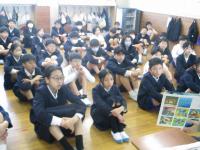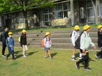 地震に続いて、津波から身を守る避難訓練を初めて実施しました。本校の校舎は海面から25メートルの高さにあります。避難訓練の計画段階では、何度もどのように避難するかを練り直しをして訓練日を迎えました。地震発生の緊急放送で、児童はいっせいに机の下にもぐって頭や体を守る体制になり、揺れがおさまるのを待ちました。その後、津波発生との放送で、全児童が校舎2階に避難しました。初めての経験でしたが、静かにすばやく避難することができました。訓練後は教室にもどり、放送とDVDで津波の恐ろしさと避難の仕方を学習しました。今日学習したことをおうちでも家族の皆さんに教えてくださいと伝えましたが、子どもたちは話したでしょうか。