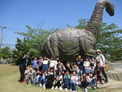 春の遠足で、1、2年生はハマナス恐竜公園へ行きました。 1年生は、小学校生活で初めての遠足、 2年生は一つ上のお兄さんお姉さんの立場になっての初めての遠足でした。