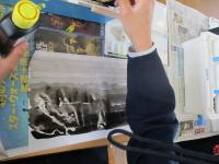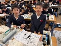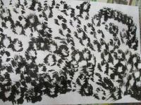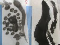 濃淡、かすれ、ぼかし、スタンプなど、いろんな技をやってみました。気に入った技を選んで、どんな作品ができるかな。次回に続く・・・