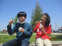 少し早めにお弁当を食べ、みんなでおいしくソフトクリームを食べました。気温も高く、最高のソフトクリー ム日和でした。