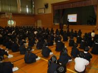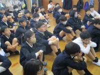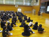 「凡事徹底」と「さしすせそ」、「あいさつ」の意味についてのお話がありました。高学年はうなずきながら聞いていました。