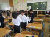 6年生の卒業まであと10日あまり、6年生がゲストティーチャーをお迎えして、卒業式で胸に飾る水引のコサージュを作りました。最初は紐を結ぶのに苦戦している様子が見られましたが、ゲストティーチャーの先生や友達に教えてもらいながら、きれいなコサージュができました。卒業の準備が進んでいくことが心強い半面、ちょっぴりさびしい思いです。