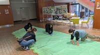 子供達は、お家の方に助けてもらいながら、慎重に金箔を貼っていました。