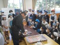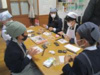 の学習として、和菓子づくり体験をしました。「灘乃花本舗あさ井」の浅井さんに「さざんか」と「紅葉」の作り方を教えていただきました。