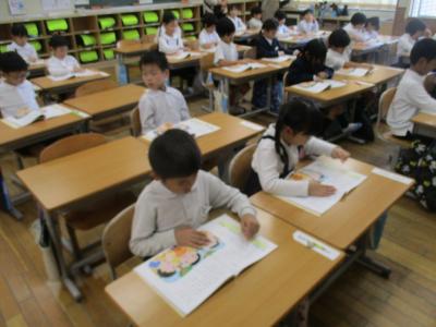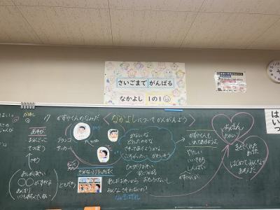 道徳の授業で「だれとでもなかよく」について考えました。鬼ごっこをすると、足が遅くすぐに鬼になってしまうかずやくんはみんなが遊ぶのをいつも遠くから見ていました。かずやくんがいないけど、いつも通りちょっと楽しい鬼ごっこから、みんなで遊んだ一番楽しい鬼ごっこになったぼくの気持ちを深く考えました。授業の終わり頃には、じっくり自分の思いを温めていたり、これまでの自分を本音で振り返っていたりする様子がありました。この授業は、学校公開でお家の方にも見ていただきました。今日の道徳について親子で話題にしてみるのもよいですね。