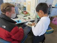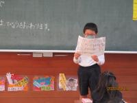 地震に続いて、津波から身を守る避難訓練を初めて実施しました。本校の校舎は海面から25メートルの高さにあります。避難訓練の計画段階では、何度もどのように避難するかを練り直しをして訓練日を迎えました。地震発生の緊急放送で、児童はいっせいに机の下にもぐって頭や体を守る体制になり、揺れがおさまるのを待ちました。その後、津波発生との放送で、全児童が校舎2階に避難しました。初めての経験でしたが、静かにすばやく避難することができました。訓練後は教室にもどり、放送とDVDで津波の恐ろしさと避難の仕方を学習しました。今日学習したことをおうちでも家族の皆さんに教えてくださいと伝えましたが、子どもたちは話したでしょうか。