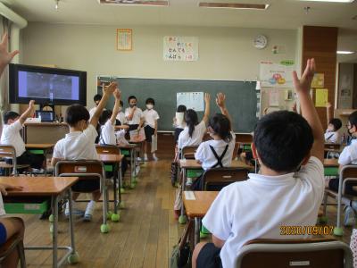 最初は、緊張気味だった子供達・・・でも、先生の質問やクイズに答える中で、自然と英語が飛び出していました。小学校で学んだ単語やフレーズは、中学校でも使えそうですね!