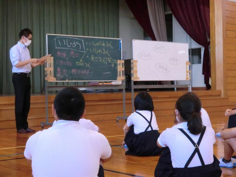 9月9日(木)、弁護士さんと「いじめ」について考えました。弁護士さんからどのようなことがいじめになるのか、いじめが起きたときどうすればよいのかなど、お話をしていただきました。
