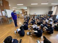 内灘中学校のALTショーン先生が来校し、6年生に英語の授業をしてくださいました。学級閉鎖中の6の2の子供達もミートで参加しました。