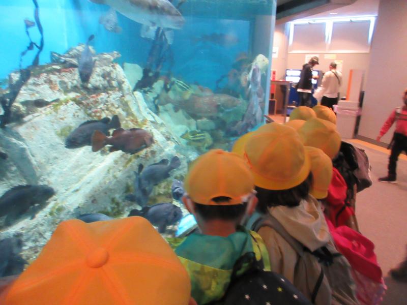 いざ、のとじま水族館に着くと、子どもたちは水槽の中にいる生き物たちに釘付けです。国語で「うみのかくれんぼ」を学習したので、どこに魚が隠れているか探している児童もいました。