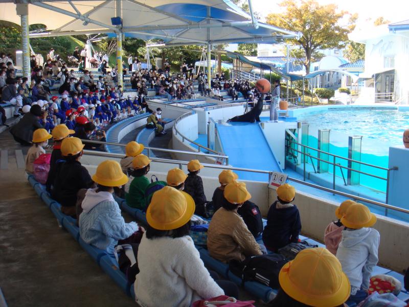 アザラシのお食事やイルカショーなども見て、子どもたちはとても楽しそうでした。その後のお弁当は、水族館の中を歩いてお腹がすいたのか、いつも以上においしく感じたようです。