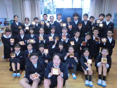 6年生は、2学期の総合的な学習の時間で「日本文化」について学習しています。その学習の一環として、この箔塗り体験を通して、日本文化のよさをより実感することができたようです。