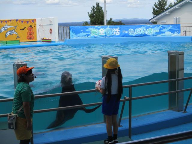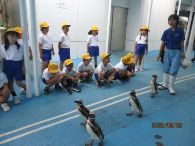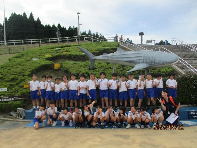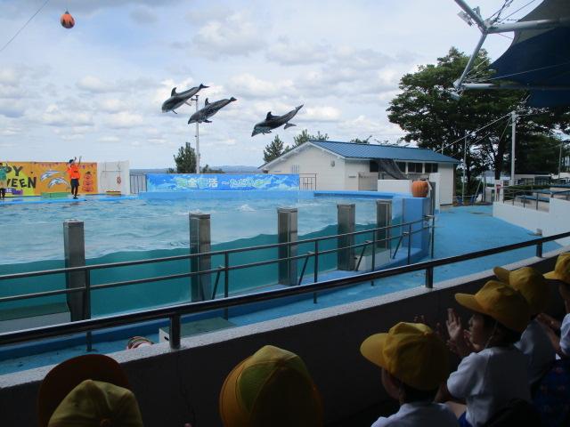 のとじま水族館に行くと、普段見たことのない魚たちや迫力あるイルカ・アシカショーに子どもたちは「すごい」「おー」と歓声があがっていました。国語の「どうぶつ園のじゅうい」「うみのかくれんぼ」ともつなげながら先生とやりとりしている様子も見られました。