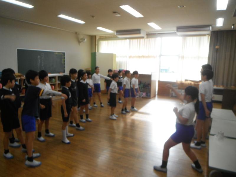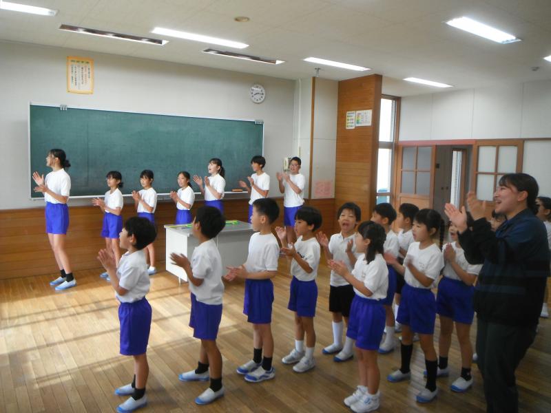 今日は、朝学習の時間に全校で応援練習をしました。