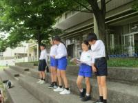 5年生はプール周りの草むしりや溝掃除、6年生はプールの中を掃除しました。1人1人ができる仕事を見つけ、全校のためにがんばっていました。振り返りでは、「みんなで力を合わせてあんなに汚かったのにきれいになってすっきりした」「がんばれてよかった」「全校のためにがんばれてよかった」という感想が出ていました。