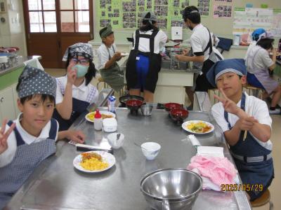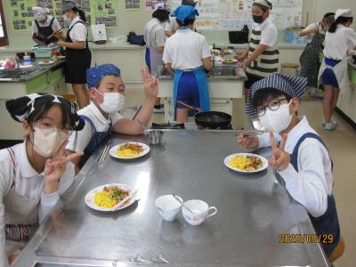 6年1組 家庭科「炒める調理」