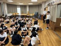 対面式のあとに、防犯ボランティアさんと登下校の安全について話し合いました。ボランティアさんは、小学校のときであいさつを交わしていた子たちが「中学校」へ行ってもつながり、「元気なあいさつ」をしてくれてうれしいし、車にのっている方のちょっとした会釈や一般の方からの「おつかれさまです」もとてもうれしいとおっしゃっていました。