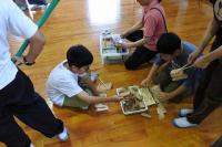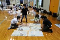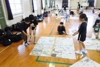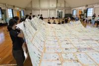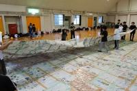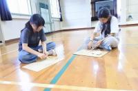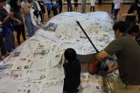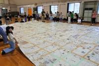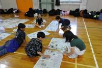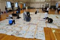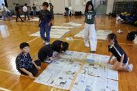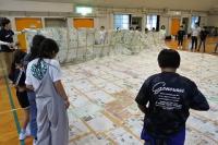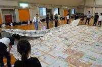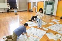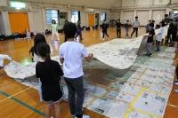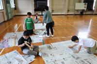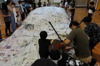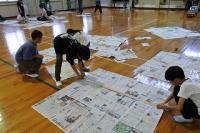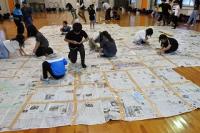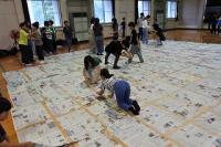 各班で丁寧につないだ新聞紙を今度はすべてをつなぎあわせ、