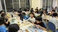 怖さを紛らわすために、大きな声を出しながら歩いているグループが多かったです。そして、怖がる友達には「大丈夫大丈夫」と声を掛け合っている姿もありました。終わった後は、「怖かったけど、楽しかった」とほっとした顔がいっぱい!お化け役の先生たちにお礼を言って、1日目の活動が無事終了しました。