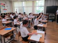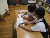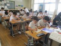 一人で黙々と考えたり、友達と考え合ったり、お家の方と一緒に問題をといたりと、暑い中でもみんながんばっていました。