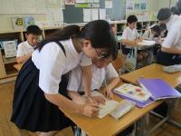 6年生の卒業まであと10日あまり、6年生がゲストティーチャーをお迎えして、卒業式で胸に飾る水引のコサージュを作りました。最初は紐を結ぶのに苦戦している様子が見られましたが、ゲストティーチャーの先生や友達に教えてもらいながら、きれいなコサージュができました。卒業の準備が進んでいくことが心強い半面、ちょっぴりさびしい思いです。