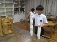 さすが、いろんな形が次々と出てきました。うまくバランスをとれるよう考えていました。まっすぐ置くだけじゃないんだよね。