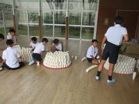 次は、グループでゲーム。1人1個ずつおいて、協力、次の人のことを考えたやさしさが必要になってきます。