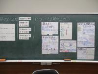 えこひいきしないで過ごせるとどんなことがいいのか考えるために、登場人物の表情の変化に注目して話し合いました。何気なく仲のいい子だけに優しくしてしまっていた自分のことを見つめなおしていました。