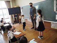 4月7日に新任式が行われました。今回は新型コロナ対策として,子どもたちは体育館には集まらず,各教室の大型テレビで新しく入ってきた先生方を見ました。
