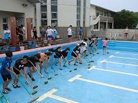 校長先生から「自分の記録を伸ばすこと」「安全に気をつけること」「着衣泳による命の守り方を知る」の3つのお話がありました。