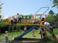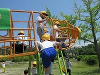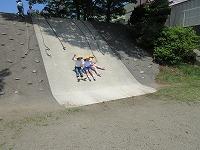 公園では、お友達と大きいすべり台をすべったり、おままごとや砂遊びをしたりと、汗びしょびしょになりながら楽しんでいました。