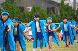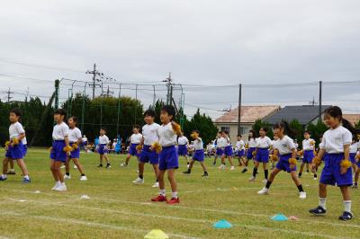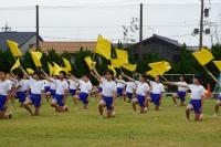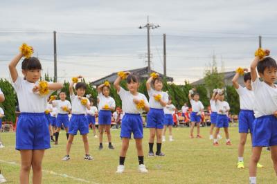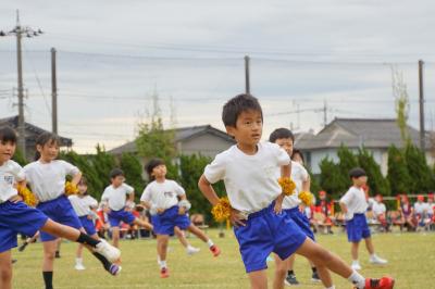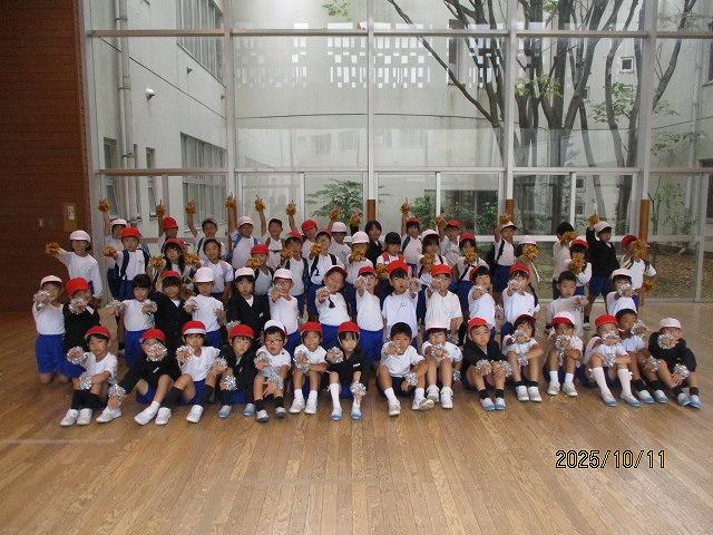 きらきらのリストバンドを身につけて、元気に、かわいく踊りました!〈こころとうごきをあわせて、かっこいいダンスにしよう〉というめあてを立て、振り付けだけでなく、隊形移動や入退場、あいさつの練習を頑張り、本番では、しっかりとやり切りました。初めての運動会での表現に一生懸命に取り組んだかわいい1年生、どの場面でも1年生のお手本となろうとがんばっていた2年生が力を合わせて素敵な演技になりました!