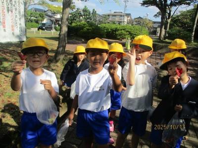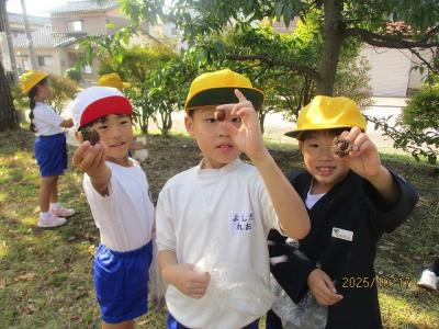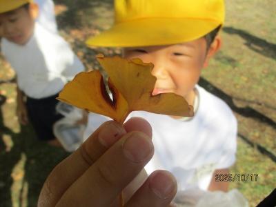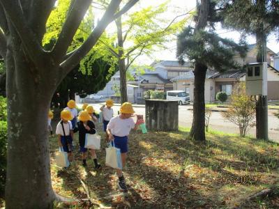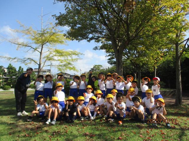 秋を探しに向陽台公園に出かけました。どんぐりや松ぼっくり、落ち葉などを拾いました。今後は、拾ってきた「秋のお宝」を使って、おもちゃを作り、みんなで遊ぶことを計画しています!
