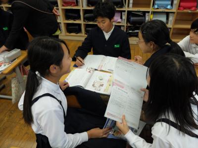 登場人物の気持ちや考えを友だちと交流しながら、自分の考えを広めたり深めたりしていました。