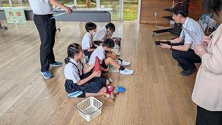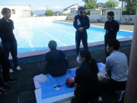 プールのシーズンが始まり、安心安全なプール指導ができるように消防署の方と先生たちで勉強会をしました。