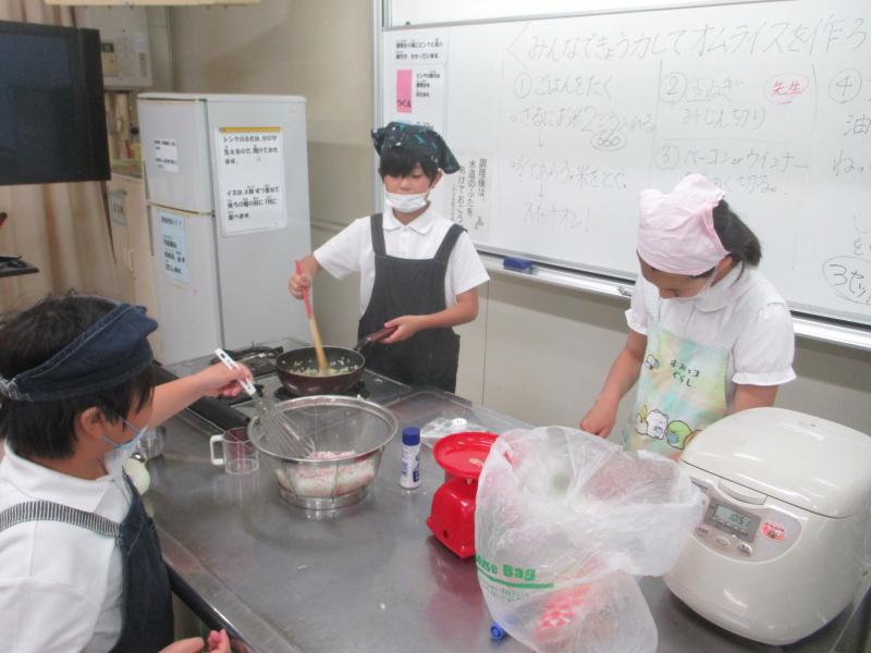 コスモスアカシアで、学習面や生活面の頑張りで花丸がたまったため、花丸パーティーをしました。今年度初めての調理実習。子どもたちはドキドキ。ご飯をたくところから完成まで、難しいことでもあきらめることなく楽しく作っていました。片付けまで丁寧にやりきり、みんな笑顔でした。