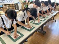 6年生の卒業まであと10日あまり、6年生がゲストティーチャーをお迎えして、卒業式で胸に飾る水引のコサージュを作りました。最初は紐を結ぶのに苦戦している様子が見られましたが、ゲストティーチャーの先生や友達に教えてもらいながら、きれいなコサージュができました。卒業の準備が進んでいくことが心強い半面、ちょっぴりさびしい思いです。